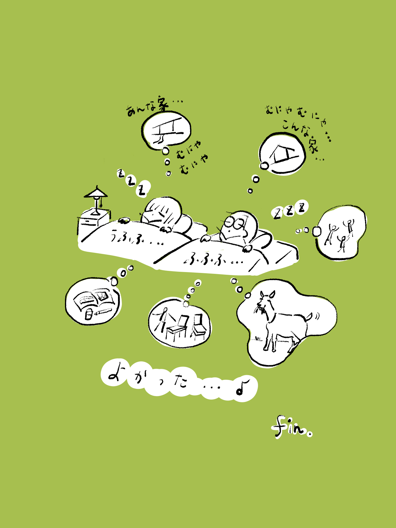 先日プレゼンした家のラフプランは、ベッドルームでこうして出現しました。コイブチ夫婦の日常。ヤギと暮らす家のプランでした。