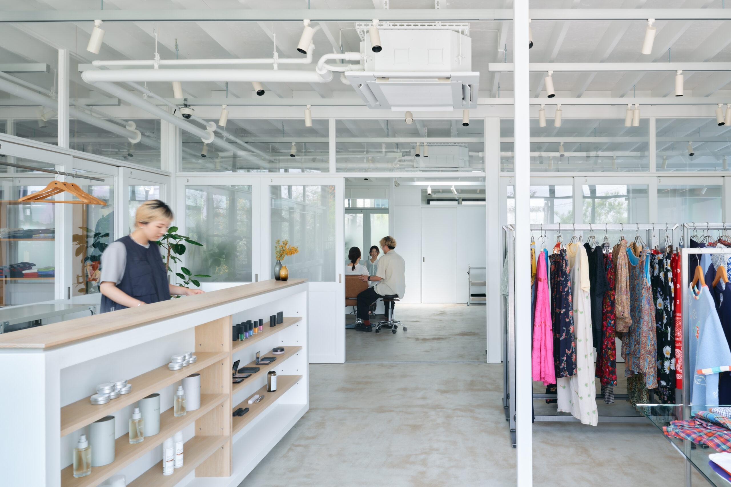 ヘアサロン・レディースアパレル・メンズアパレルの複合店舗の新築プロジェクトです。