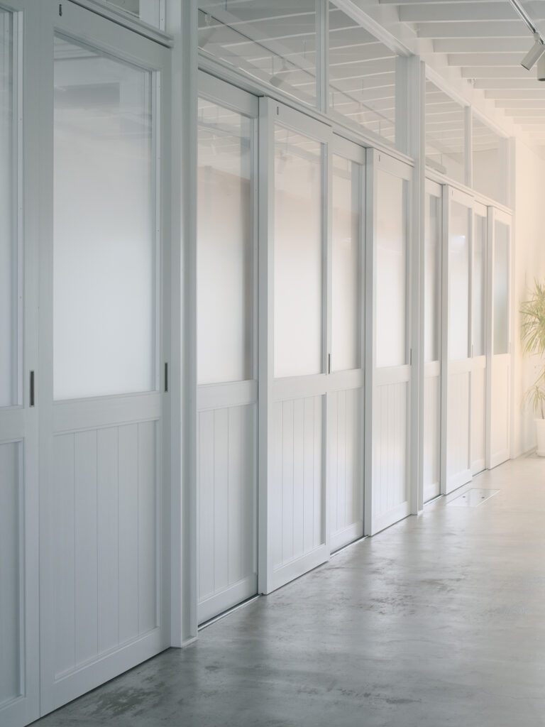 各スペース同士が軽やかにつながり合う建築です。どこかギャラリーのような、どこかアトリエのような印象をも備えます。