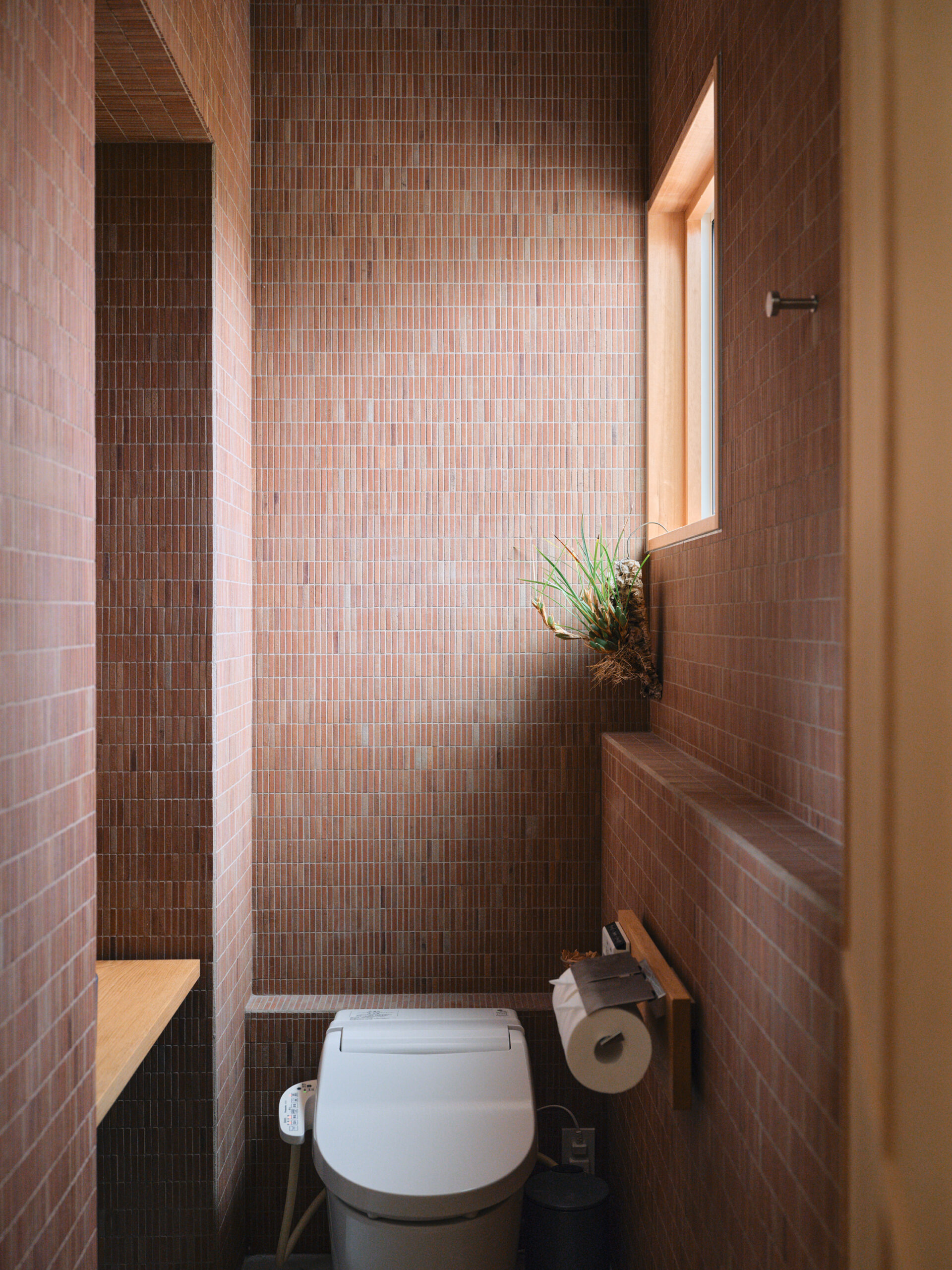 ↑シャンプースペースより座ってみる。造作家具によって仕切られる。